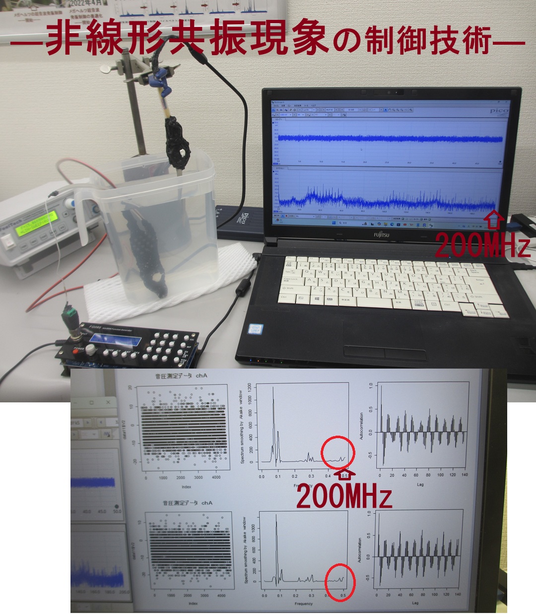 超音波システム(音圧測定、発振制御)を利用した、